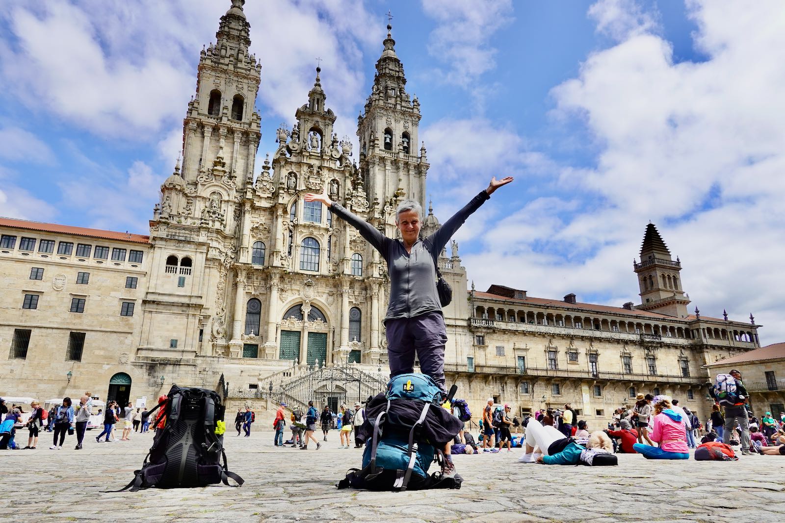 Die Ankunft ist sehr emotional. Da zu sein, es geschafft zu haben, all die Strapazen überstanden zu haben, das bewegt sehr. Man freut sich, und umarmt die Mitpilger, die man über Tage und Wochen immer wieder mal kurz oder länger gesehen hat. Mit denen man kurze oder längere Gespräche ausgetauscht hat. Viele liegen oder sitzen auf dem Platz vor der Kathedrale und geniessen und erleben eine spezielle Energie.