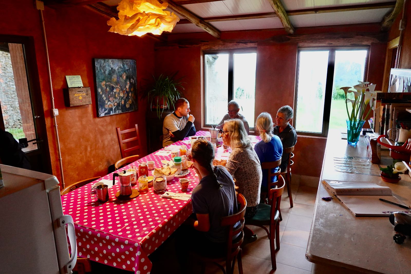 Die Essenszeiten sind zu unseren etwas verschoben. So gibt es das Mittagessen ungefähr von 13 - 15 Uhr und das Nachtessen von 20 - 22 Uhr. Für einen Pilgerrhytmus nicht sehr geeignet. In Orten wo die Pilger zahlreich sind, gibt es auch Restaurants die den ganzen Tag eine warme Küche anbieten.