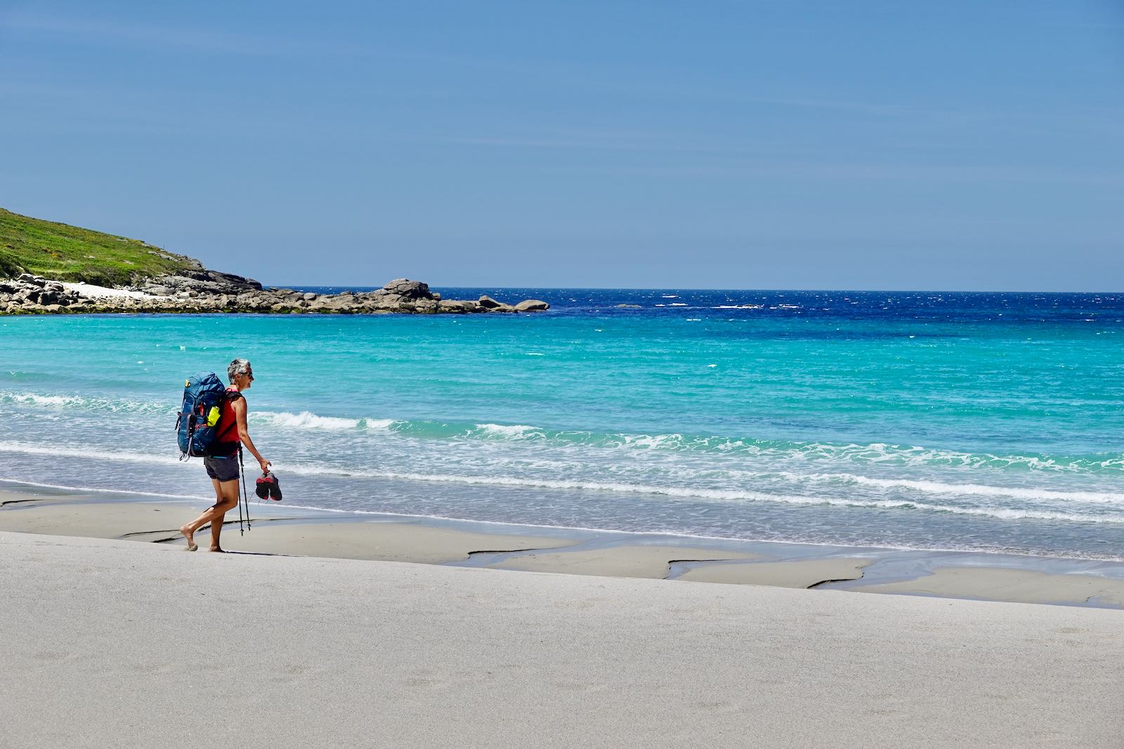 Wenn du eine solche Strecke zurücklegst, dann gibt es alles, was du vor die Füsse bekommst. Pfade durchs Unterholz, steinige Wege, schlammige Wege, kleine Strassen, breite Strasse mit und ohne Verkehr. Auf dem Küstenweg gibt es immer wieder Asphalt. Darum sind gut dämpfende Schuhe von Vorteil.