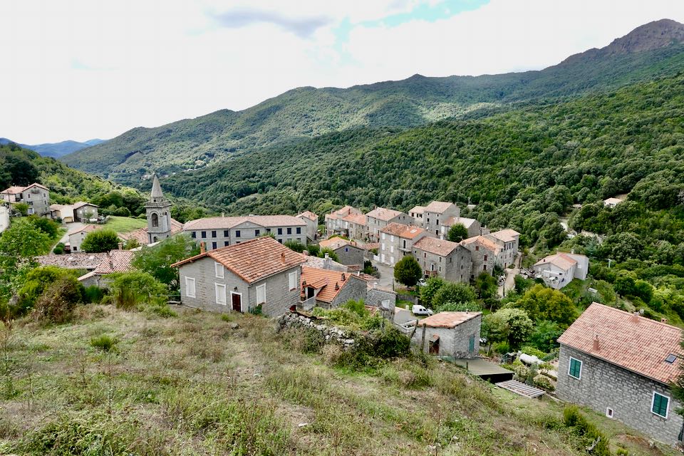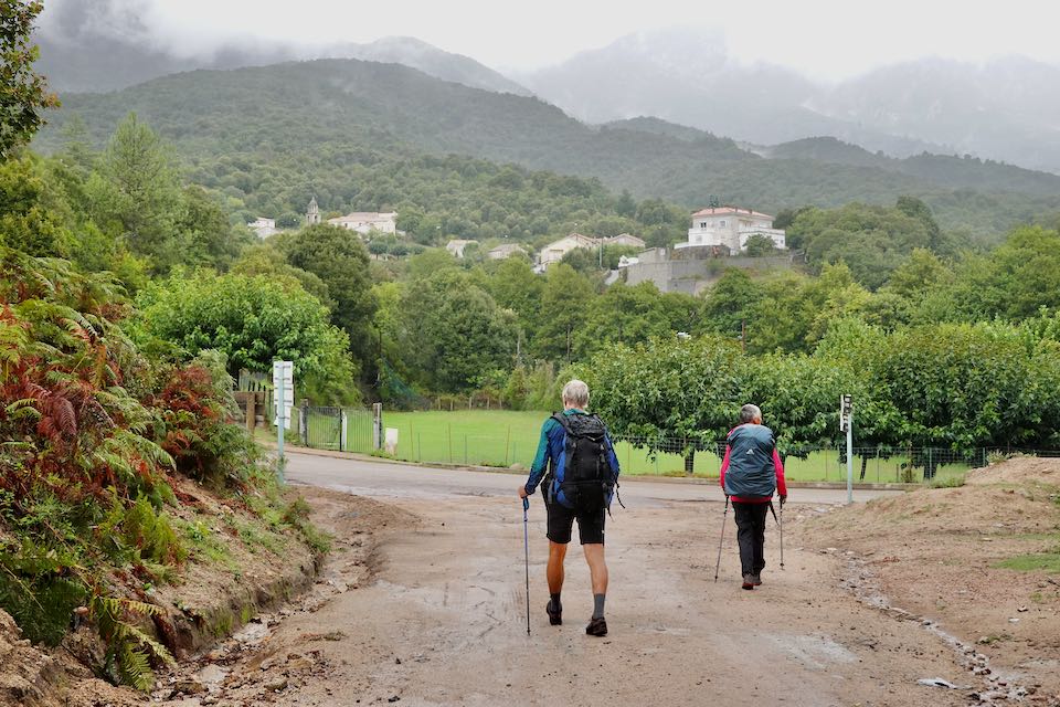 Am nächsten Morgen regnet es in Strömen und der Wetterbericht verspricht auch keine Besserung. So streichen wir die Bergvariante und nehmen die Strasse nach Zicavo, das wir schon am Mittag erreichen. Unsere Herbergsmutter öffnet uns schon von weitem die Türe und begrüsst uns herzlich. Drinnen wärmt das Feuer im Ofen. Wunderbar.