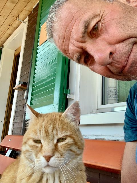 Der nächste Tag führt mich über den Klausenpass nach Ratzi oberhalb von Spirigen. Ein schöner Platz mit Blick auf das Schärhorn und das Schächental. Sogar die Hauskatze lässt sich zu einem Selfi überreden.