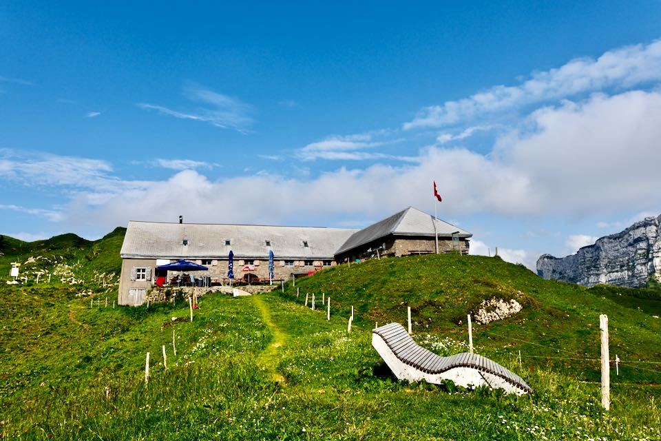 Der nächste Tag beginnt mit einem Abstieg von 1200m nach Unterwasser. Nun dem Tal entlang nach Stein, wo wieder ein Aufstieg von 800m zur Alp Oberchäseren auf mich wartet. Diese Gegend ist einsamer als der Alpstein. Die Alpwirtschaft Oberchäseren liegt am Fuss des Speers. Ich werde schon erwartet. Ausser mir übernachtet nur noch eine vierköpfige Familie.