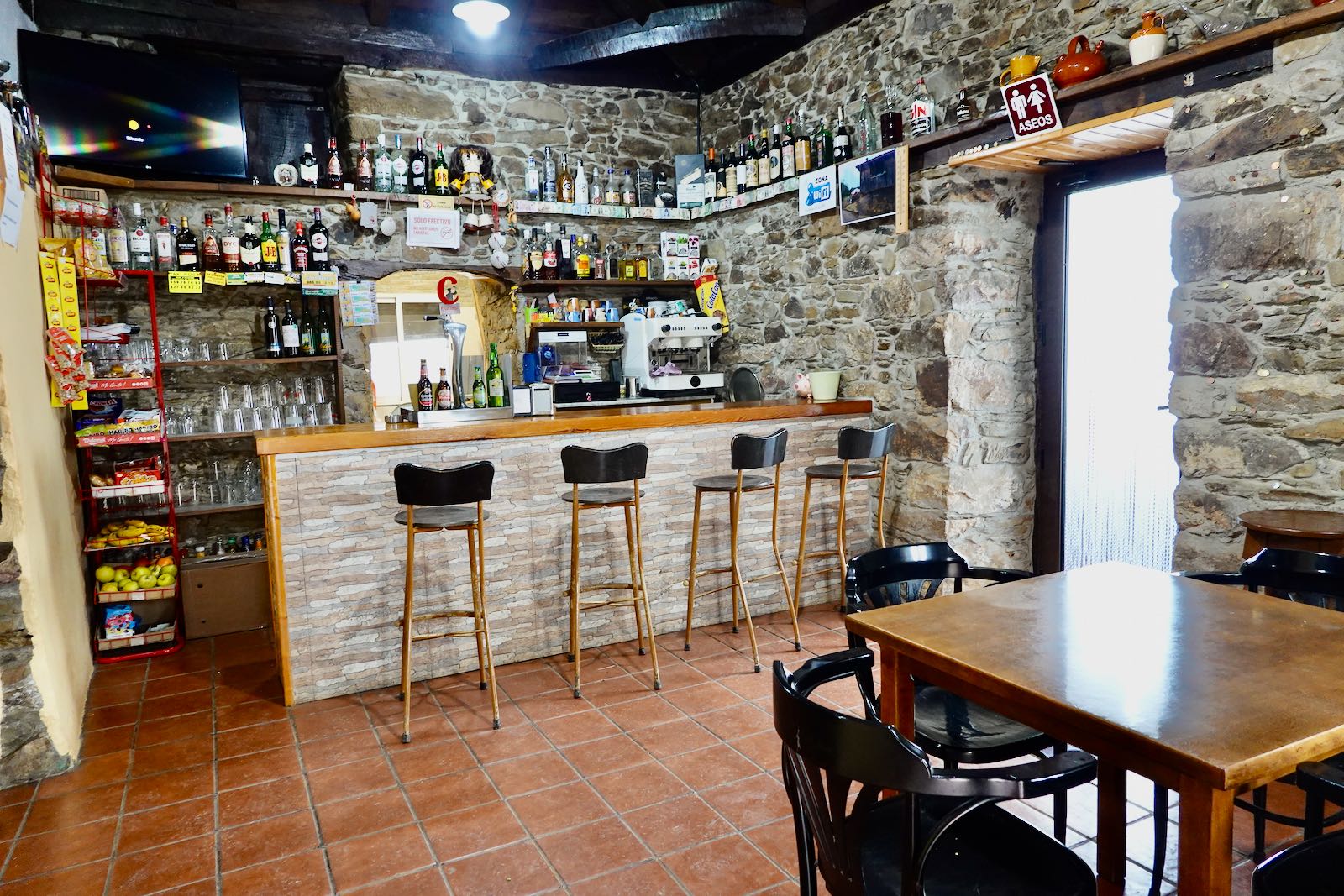 Die Essenszeiten sind zu unseren etwas verschoben. So gibt es das Mittagessen ungefähr von 13 - 15 Uhr und das Nachtessen von 20 - 22 Uhr. Für einen Pilgerrhytmus nicht sehr geeignet. In Orten wo die Pilger zahlreich sind, gibt es auch Restaurants die den ganzen Tag eine warme Küche anbieten.