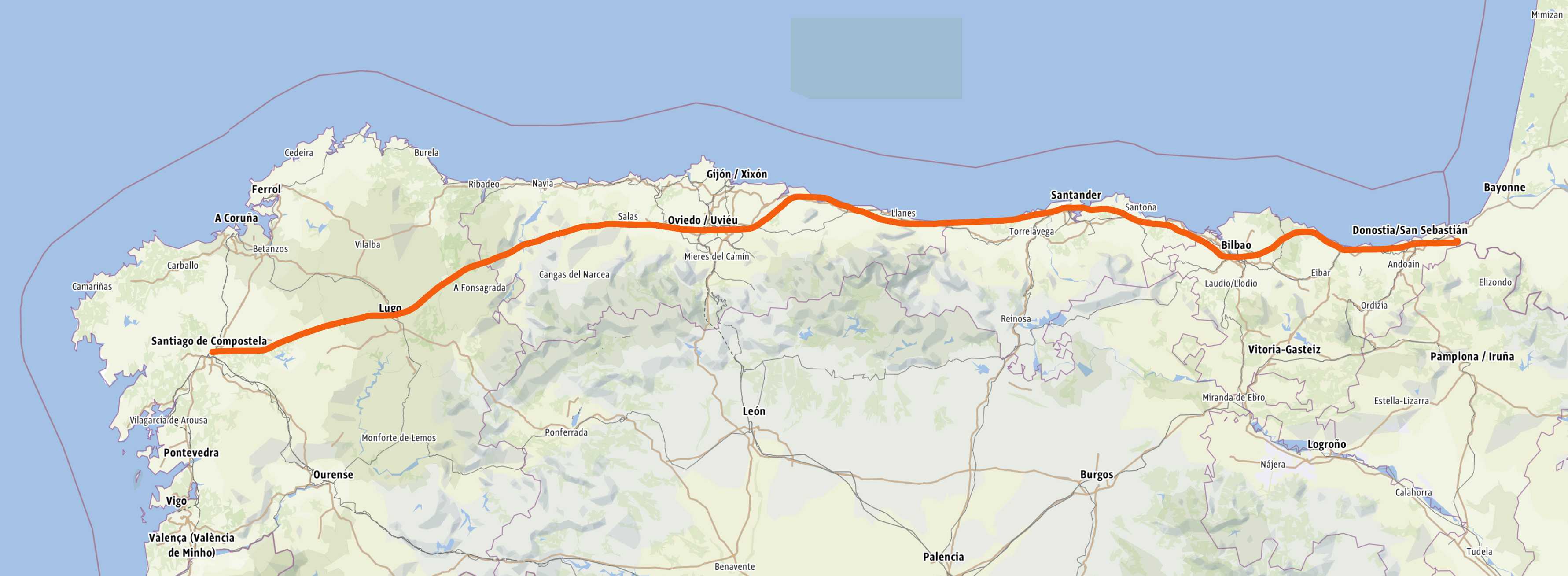 Der Camino del Norte strartet in Irun, gleich hinter der französischen Grenze und folgt mehrheitlichh der Küstenlinie. Wir haben nach mehr als der Hälfte des Weges auf den Camino Primitivo gewechselt. Dieser hat weniger Asphalt und mehr Naturwege...