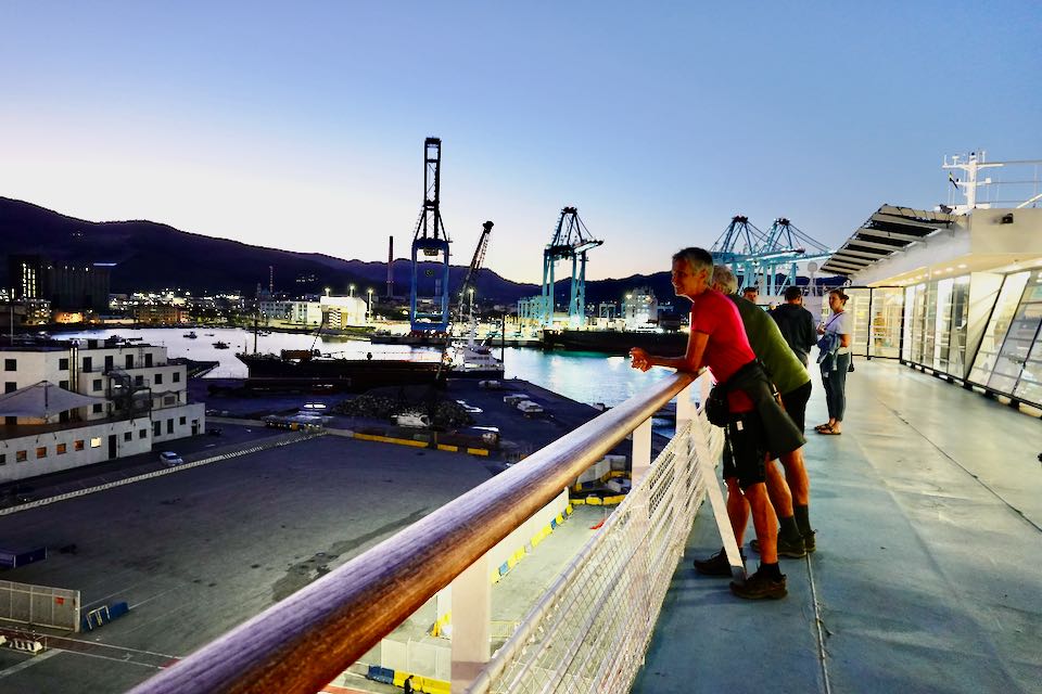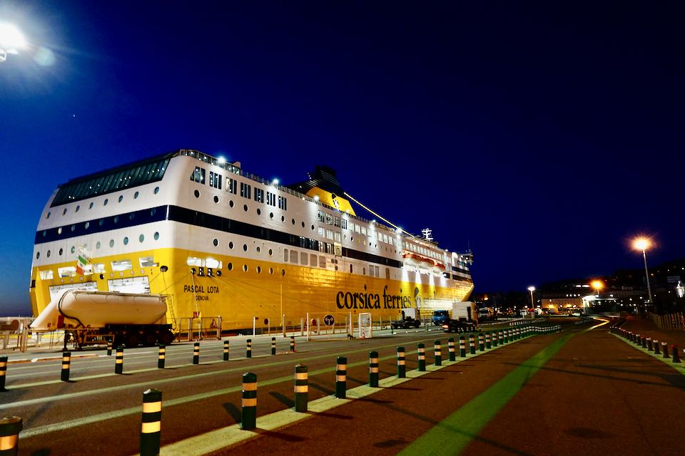 Zu Fuss, sich Zeit nehmen das steht im Vordergrund unserer Reise nach Korsika. Das beginnt schon mit dem fast zweistündigen Fussmarsch vom Bahnhof Savona zum Hafen Porto Vado. Nun gut, es gibt auch Busse oder Taxis, aber so ein durchwandern einer italienischen Stadt ist schon ein Erlebnis für sich. Unterwegs gibts dann eine feine Pizza in einem Strandrestaurant. So eine Nachtüberfahrt ist praktisch, man kommt früh am Morgen auf der Insel an und kann gleich mit der Weiterreise loslegen.