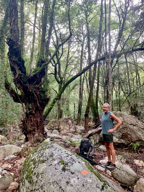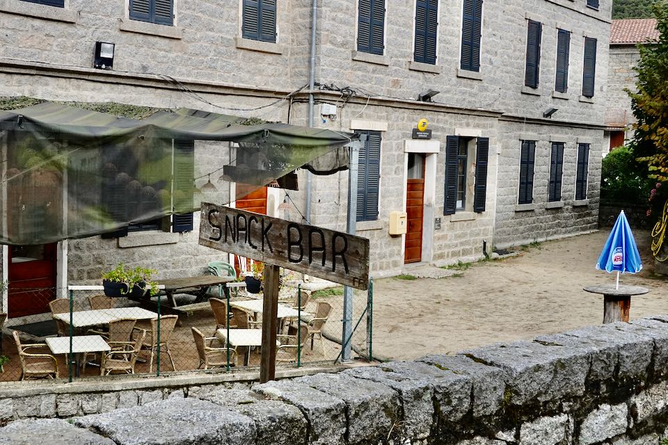 Wir steigen zum Col de Laparo auf, wo wir den GR 20 kreuzen. Mit der Einsamkeit, die wir in den vergangenen Tagen spürten, ist nun schlagartig Schluss. Es wird geplaudert und diskutiert, viele GR 20 Wanderer sind unterwegs. Für uns geht es nun runter nach Cozzano und sofort sind wir wieder alleine unterwegs. Eingangs Dorf kommen wir an einer Tankstelle mit grossem Lebensmittelladen vorbei. Endlich können wir unseren Proviant aufstocken. Auf dem Weg zu unserer Unterkunft laufen wir an einem Restaurant vorbei, das am Abend offen hat. Da hüpft das Herz vor Freude.